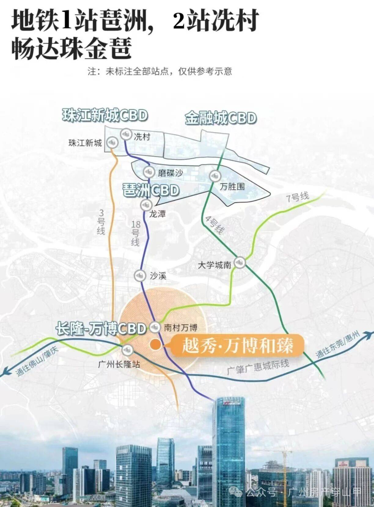 乘坐十八号线,从南村万博站出发,仅需一站即可直达琶洲会展中心,两站可达珠江新城,三站便可抵达天河体育中心。这意味着,您在万博居住,却能享受与珠江新城同等的通勤效率。无论是前往珠江新城的金融机构上班,还是去琶洲参加商务会议,亦或是到广州南站搭乘高铁出差,都能实现一站直达或极短时间内的快速通达。这种高效的交通连接,彻底打破了地域的限制,让万博成为了广州真正的“第二 CBD”,也让越秀万博城和臻的业主拥有了更多的职业选择和发展机会。